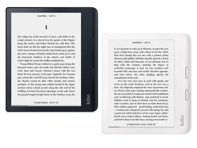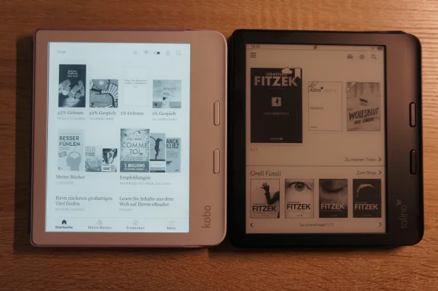 Kobo Libra 2 (links) vs. Tolino Vision 6 (rechts)