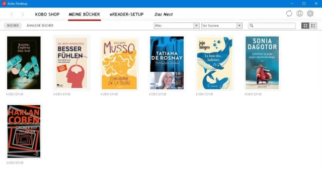 Kobo Desktop: Hier sind nach der Synchronisierung nur die uns zur Verfügung gestellten E-Bücher auffindbar