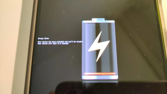 Willkürlich wurde auf dem Handy-Display «Orange State» angezeigt. Angeblich war das Gerät entsperrt worden und konnte nicht mehr als vertrauenswürdig betrachtet werden. Mal passierte es, nachdem ich die SIM-Karte eingelegt hatte, mal als der Handyakku leer war und einmal einfach so – als es auf dem Home-Office-Pult lag. Unschön.