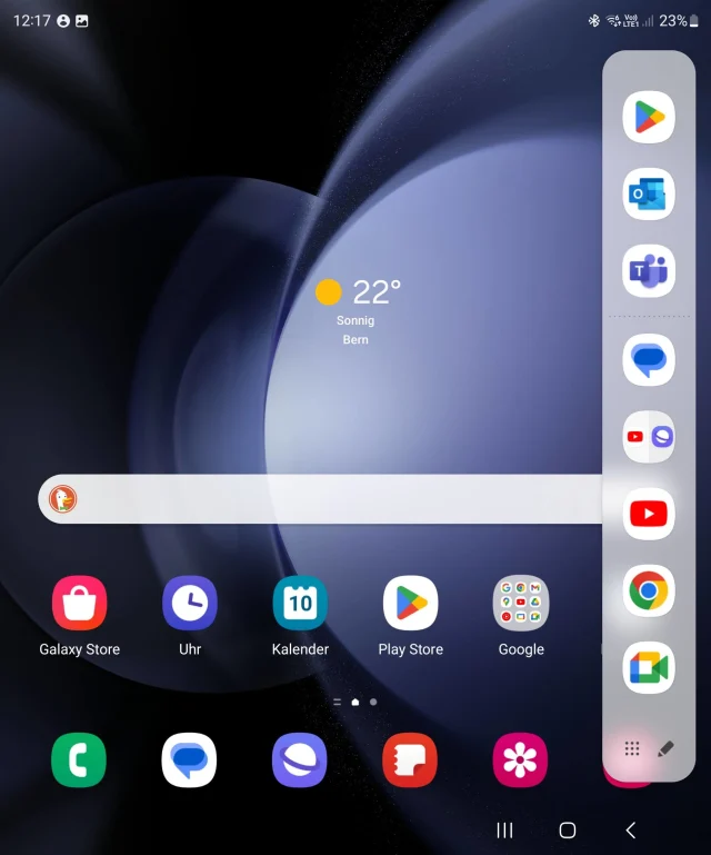 Wer von rechts nach links wischt, findet diese Verknüpfungsleiste vor, wie auch bei anderen Galaxy-Geräten