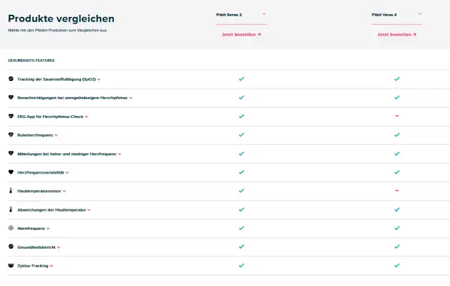 Folgende Gesundheitsfeatures bieten beide: Herzfrequenzmessung, Herzfrequenzvariabilität (HFV-Schwankungen), Sauerstoffsättigung (SpO2), Abweichungen Hauttemperatur, Schlafaufzeichnung/-phasen/-profil/-index, Atemfrequenz, Atemübungen, Achtsamkeitsübungen, Stimmungsprotokolle, Stressmanagement-Index, Zyklus-Tracking. Wie Sie pro Uhr Stress überwachen, ist hier erklärt.