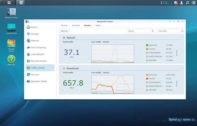 Nebst diesen aufgezählten Anschlussmöglichkeiten und zur Verfügung gestellten Bandbreiten kann sich beim Wi-Fi-6-Modell auch die softwareseitige Ausstattung sehen lassen: Nebst den Klassikern wie Gastnetzwerk, Kindersicherung oder einer WLAN-Zeitschaltfunktion lässt sich mit Synologys RT6600ax auch ein Mesh-Netzwerk aufbauen sowie ein VPN-Zugang verwirklichen. Softwareseitig ist dabei das Betriebssystem Synology Router Manager (SRM) Dreh- und Angelpunkt des Gerätes. Hier lassen sich beispielsweise ein Media-, VPN-Server einrichten, einen Fernzugriff via Remote-Desktop oder auch Site-to-Site-Tunneling «legen» oder auch die Verwaltung des zugrundeliegenden Netzwerks konfigurieren.