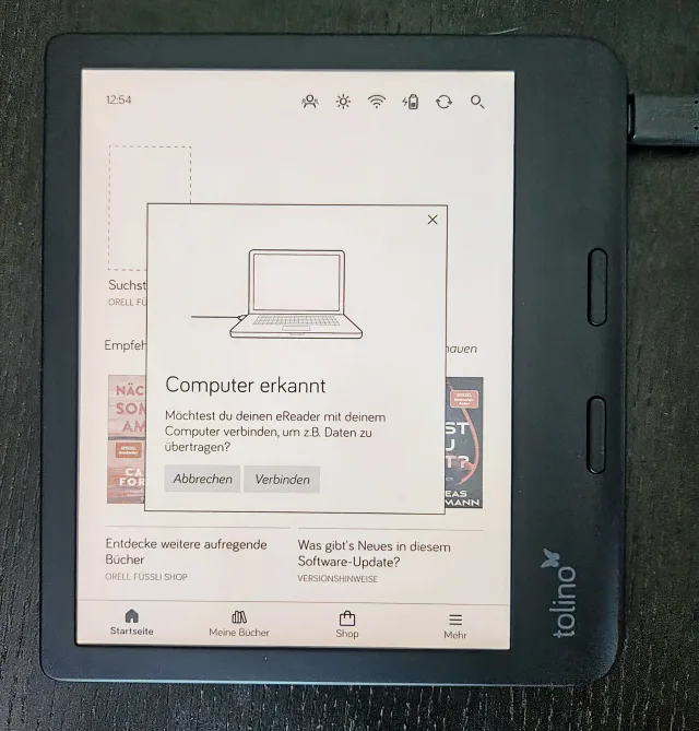 Was mir besonders gefällt: Der Touchscreen reagiert schnell und präzise. Weniger gut finde ich die Position des Einschaltknopfes auf der Hinterseite. Der war für mich nur schwer zu erreichen. Zudem musste ich den E-Reader mit zwei Händen halten, für einhändiges Lesen ist er zu breit.