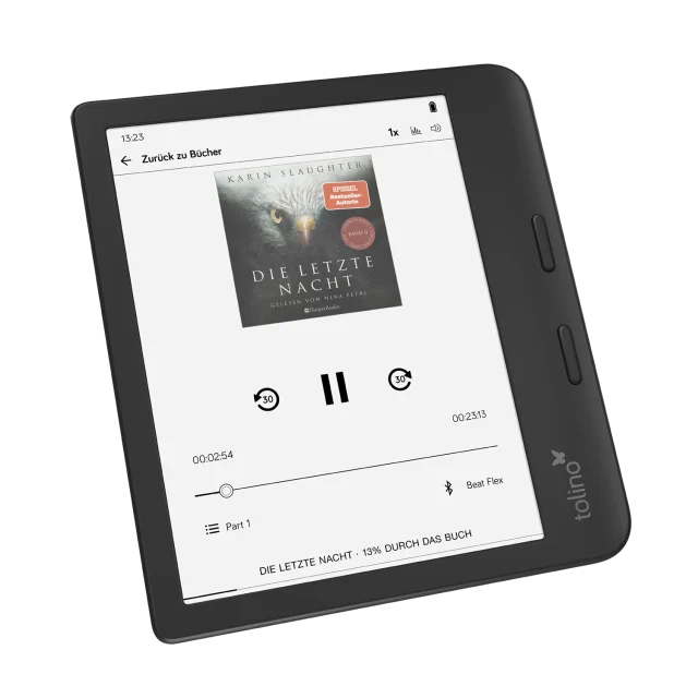Quelle: TolinoEin weiterer Vorteil des Tolino ist seine Offenheit: Im Gegensatz zu Amazons Kindle können auch zahlreiche Buch-/Dateiformate (EPUB, MOBI, PDF, TXT, CBR, CBZ, JPEG und PNG) anderer Anbieter auf das Gerät übertragen werden. Das geht ganz einfach via PC. Auch Hörspiele kann der Tolino Vision Color via Bluetooth an einen Kopfhörer wiedergeben.