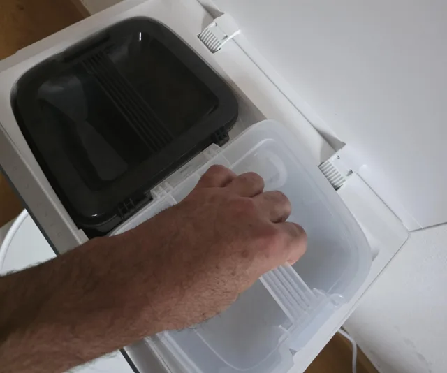 Basisstation öffnen: Fürs Frischwasser (rechts), Schmutzwasser (links)