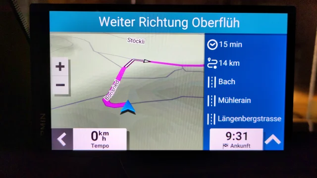 Bevor ich losfuhr, gabs Infos zu Fahrtdauer, Kilometern, Strassennamen und erwartete Ankunft