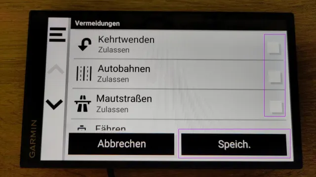 Hier können Sie z. B. im Ausland Mautstrassen ausschliessen