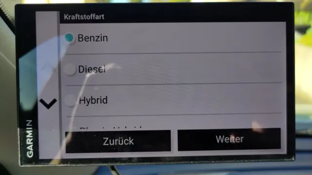 Wählen Sie die Kraftstoffart ihres Autos (Benzin, Diesel, Hybrid etc).