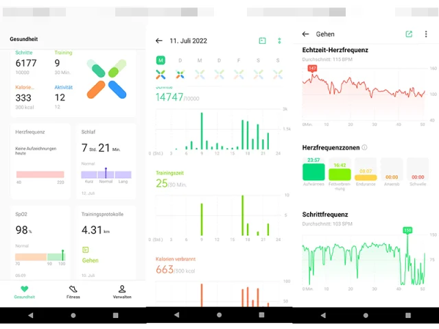 Es gibt fünf Herzfrequenz-Zonen, die sowohl via Uhr als auch in der HeyTap-Health-App angezeigt werden