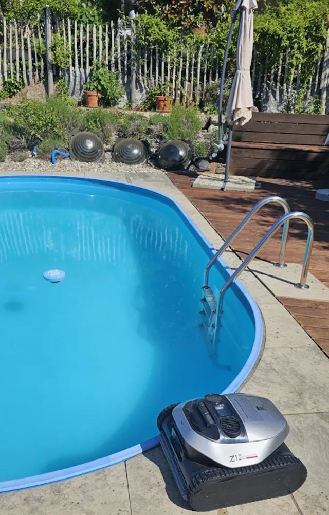 Quelle: PCtippFür den Test des Dreame Z1 Pro wurde ein besonders anspruchsvoller Parcours gewählt, der die Leistungsfähigkeit des Roboters unter realen Bedingungen auf die Probe stellen sollte. Zum Einsatz kam ein ovales Folienpool-Becken mit den Massen 6,25 x 3,5 x 1,60 Meter (L x B x T). Dieses Becken zeichnete sich nicht nur durch seine Grösse, sondern auch durch seine komplexe Form aus. Seine ellipsenförmige Gesamtstruktur besteht aus geraden Stücken, die sich mit im Radius verengenden Teilabschnitten abwechseln. Eine besondere Herausforderung stellte zudem eine Leiter, die an der Wand des Beckens befestigt war und vom Roboter umfahren werden musste. Darüber hinaus gab es Wandteilsegmente im Ovalpool, die Falten in der Poolfolie aufwiesen. Gerade diese Falten sind bekanntermassen Brutstätten für Algen und Sammelplätze für Schmutz, weshalb wir im Test genau darauf geachtet haben, wie der Saugroboter mit diesen Problemzonen zurechtkommt. Unterm Strich stellt der Testparcours eine recht grosse Herausforderung für einen «selbstkletternden» Poolroboter da. Gerade im Vergleich zu einem rechteckigen oder «nur» runden Pool, und insbesondere aufgrund der variierenden Radien und der damit verbundenen Notwendigkeit, die Navigation ständig anzupassen.