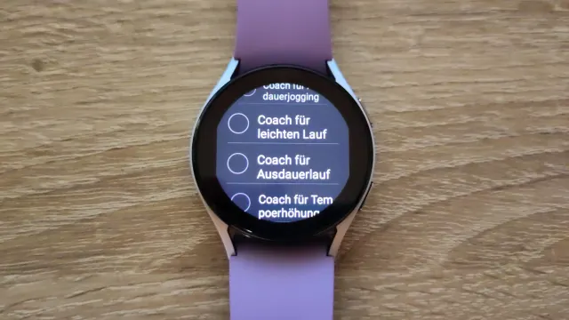 Ausserdem gibt es einen Laufcoach. Unter Ziel können Sie wählen, ob Sie z. B. einen Coach für langsames bzw. schnelles Gehen, einen Power-Walking-Coach oder Kalorienverbrauchscoach verwenden möchten. Es gibt auch einen Coach für leichtes Joggen, Dauerjoggen oder Ausdauerlauf etc.