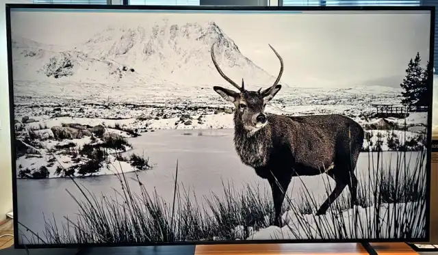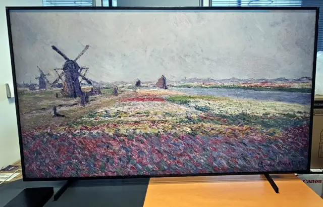 Quelle: PCtippDer Galeriemodus überzeugt durch die realistische Darstellung von Kunstwerken, die sich durch die Anpassung an das Umgebungslicht gut in den Raum einfügen. Gerade hier zahlt sich die Integration der KI-Funktionen des NQ4 Gen3 AI Chips aus. Das Gerät (Softwareversion: 1047) punktet hier bei der Bildverarbeitung sowie Anpassung des Galeriemodus an die Lichtverhältnisse der Umgebung. Im Betrieb braucht der TV durchschnittlich 142 Watt, maximal waren es im Testzeitraum 178 Watt. Das geht für ein Gerät dieser Grösse in Ordnung.