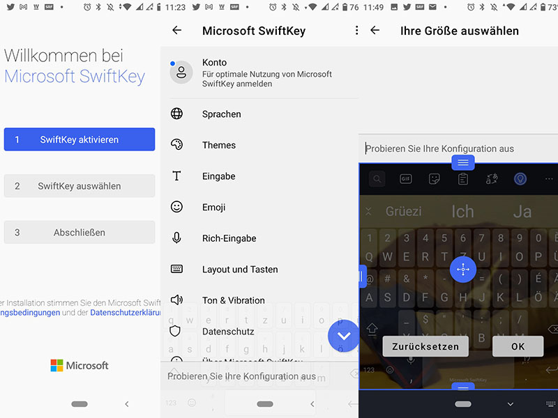 SwiftKey bietet einen bunten und grosszügigen Blumenstrauss von Funktionen und ist sehr hilfreich, wenn man häufig Geräte wechselt. Nach der Installation erscheint ein Willkommens-Fenster von Microsoft, das Sie in drei Schritten schnell zur Verwendung von SwiftKey geleitet.