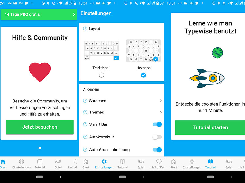 Für wen ist Typewise geeignet? Für solche, die sich oft vertippen und offen sind für Neues. Ich habe die Typewise-Tastatur über längere Zeit verwendet. Darum werde ich Ihnen nichts vormachen: Die ersten Tage müssen Sie sich durchbeissen. Doch mit dem Lernmodus, bei dem sich die Buchstaben am gewohnten Platz befinden, gewöhnt man sich erst mal an die verschiedenen Wisch- und Drück-Gesten sowie die Smartbar (die Leiste mit Wortvorschlägen und Korrekturen). Im Hexagon-Modus muss man etwas dran bleiben.
