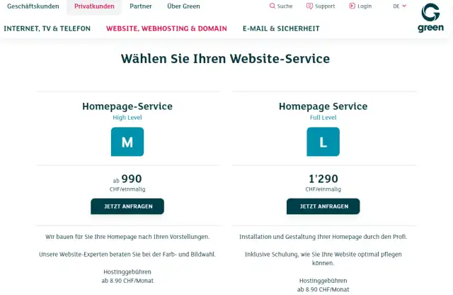 Green.ch: Webseitenerstellung für einen Pauschalpreis
