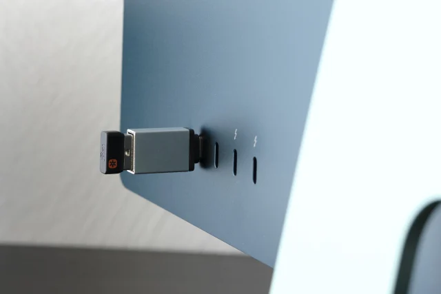 So nebenbei: Ein Billig-Adapter muss den Logitech-Dongle überbrücken, weil die Firma immer noch kein USB-C kann
