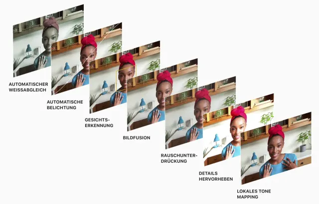 Aber jetzt wird alles besser. Die neue Kamera löst mit 1080p (Full-HD) statt mit 720p auf. Der integrierte M1-Chip kümmert sich um die Signalverarbeitung, die endlich ein wenig Licht ins Dunkel bringt. Dafür verdient Apple allerdings kein Lob; vielmehr stellt sich die Frage, warum das so lange gedauert hat.