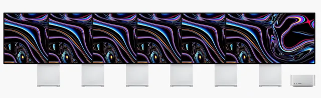 Manchmal braucht es etwas Visualisierung, um die Tragweite abzuschätzen: Der Mac Studio rechts unten bespielt bis zu sechs Displays mit 6K-Auflösung