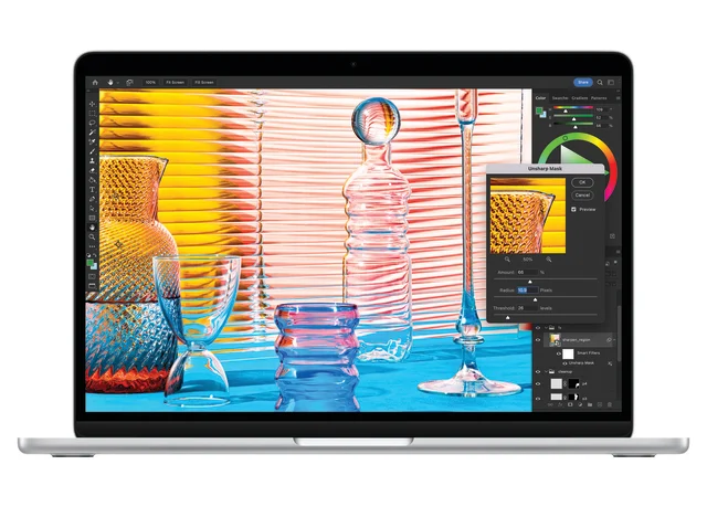 Im MacBook Air pumpt derselbe M2, wie im ebenfalls neuen MacBook Pro, und bietet demzufolge eine identische Leistung. Allerdings bietet das MacBook Pro eine «aktive Kühlung», lies: einen Lüfter. Der springt zwar nur unter Dauerlast an und ist davon abgesehen so gut wie nie zu hören. Trotzdem: Wenn Sie häufig längere Videos exportieren oder Bilder rendern, kann es sein, dass das MacBook Air zu warm und der M2 gedrosselt wird. Abgesehen von solchen Situationen bietet der Lüfter des MacBook Pro keinen Vorteil, im Gegenteil: Im Vergleich zum MacBook Air besteht das Restrisiko eines hörbaren Lüfters, weil sich zum Beispiel eine Adobe-App im Hintergrund nicht zu benehmen weiss.