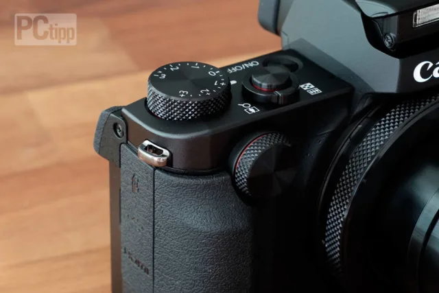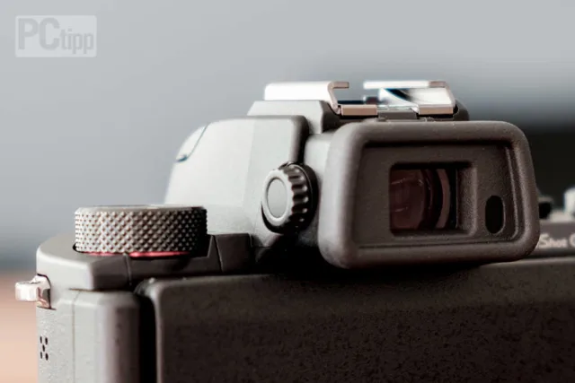Quelle: PCtippDie Optik wird von den mechanischen Bedienelementen geprägt, mit denen die Handhabung deutlich erleichtert wird. Auf der Vorderseite befinden sich gleich zwei Drehringe, einer am fest verbauten Objektiv und einer neben dem Auslöser.
