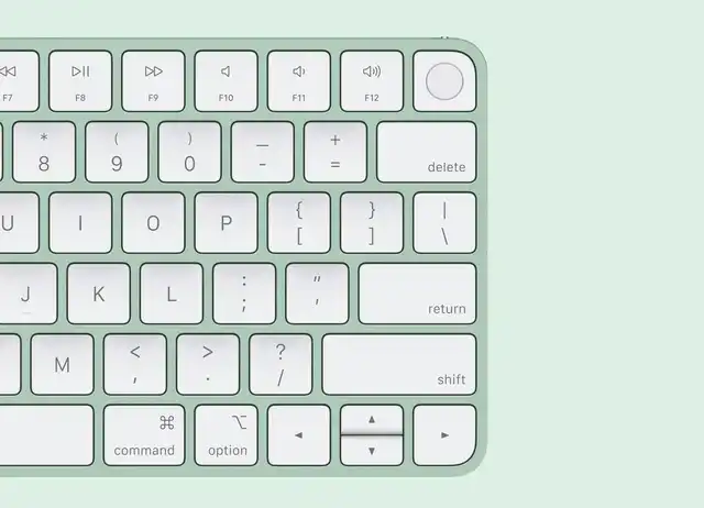 Tastatur. Für den kleinsten iMac ab 1299 Franken stehen zwei verschiedene, farblich passende Tastaturen zur Auswahl: das kleine «Magic Keyboard» ohne Touch ID oder das grosse «Magic Keyboard mit Touch ID und Ziffernblock» (+80 Franken).