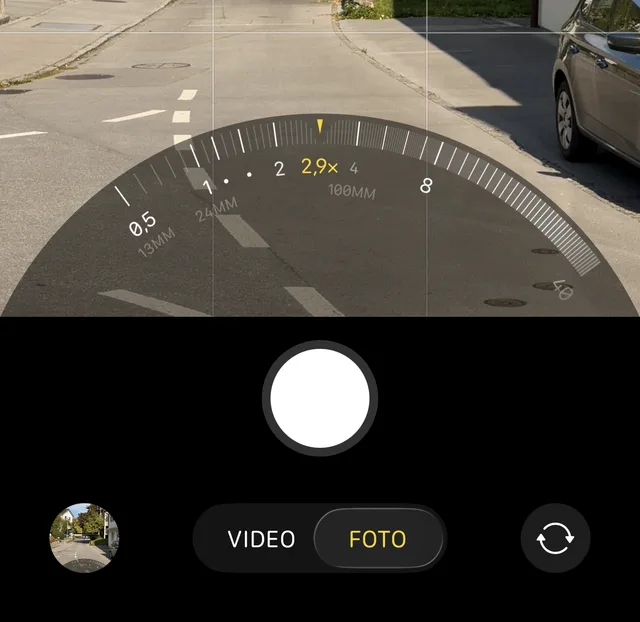 Doch das ist nicht alles. Das iPhone 17 Pro bietet neue Brennweiten, die auch ein wenig durch die Marketing-Abteilung herbei gebetet werden. Apple spricht von «8 Pro-Objektiven in der Tasche», womit in erster Linie die Bildwirkung gemeint ist. Denn jeder, der einen Blick auf die Rückseite wirft und bis drei zählen kann, weiss, dass das metaphorisch zu verstehen ist. Stattdessen errechnet die Software den Bildausschnitt und die Anmutung folgender Brennweiten (auf Kleinbild umgerechnet): 13 mm, 24 mm, 28 mm, 35 mm, 48 mm, 100 mm und 200 mm. Dazu gesellt sich der Makro-Modus.