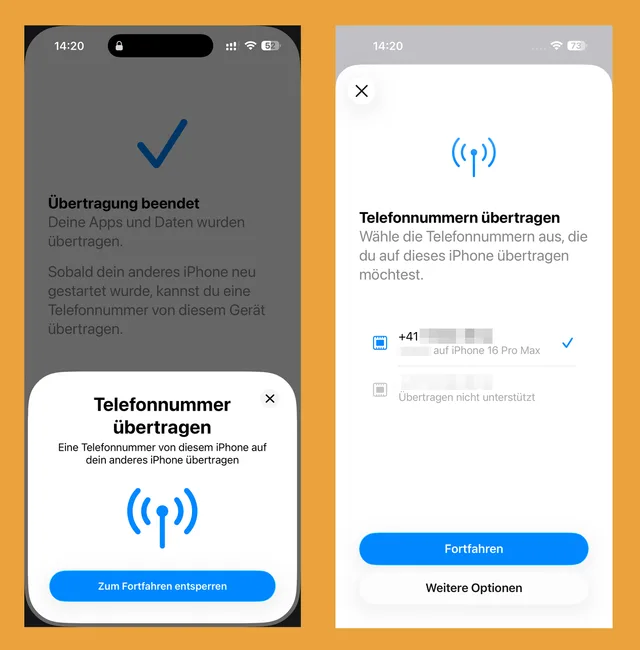 Im Idealfall wird die eSIM bei der Datenübernahme auf ein neues Gerät automatisch transferiert. Doch in der Praxis hängt das einzig vom Provider ab. Bei meiner Dual-eSIM-Konfiguration wurde die eSIM von Swisscom innerhalb von Sekunden abgeschnorchelt und übertragen. Bei der zweiten eSIM von Galaxus/Sunrise musste hingegen im Online-Zugang ein neuer QR-Code für die Installation angefordert werden.