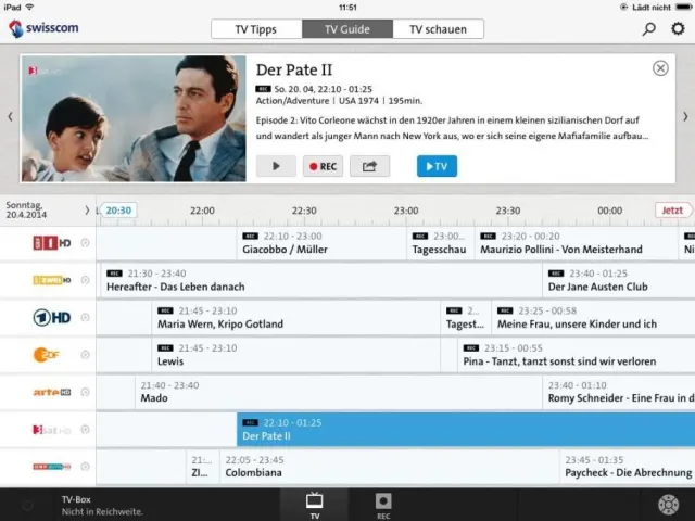 Aus dem TV-Guide (hier auf dem iPad) können auch vergangene Sendungen geschaut und sogar aufgenommen werden
