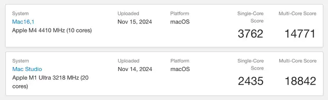 Der M4 Pro zieht mit dem M2 Ultra praktisch gleich – oder überholt ihn sogar