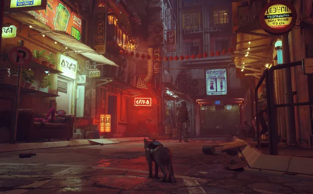 Der Überraschungshit «Stray» hat es auch auf die Apple-Plattorm geschafft – und überzeugt mit seinem Lichtspiel