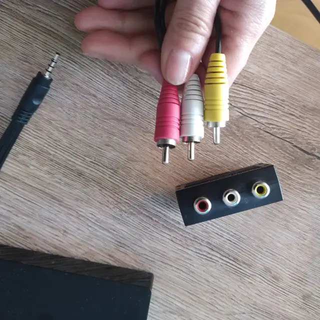 Kabel: Klinken-Cinch-Kabel (AV-auf-Cinch/-AV-Audio-und-Video/Composite)Befindet sich nicht im Lieferumfang