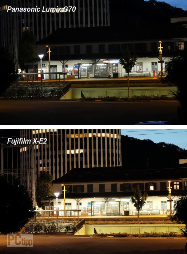 Quelle: PCtipp.chDämmerung. Selbst in der Dämmerung kann die G70 bestehen. Bilder mit 800 ISO sind nahezu rauschfrei. Das ändert sich auch bei 1600 ISO kaum. Bei 3200 ISO und 6400 ISO verschwinden die ersten Details. An den möglichen 12’800 ISO und 25’600 ISO erfreut sich hingegen vor allem die Marketing-Abteilung. Hier die Übersicht:
