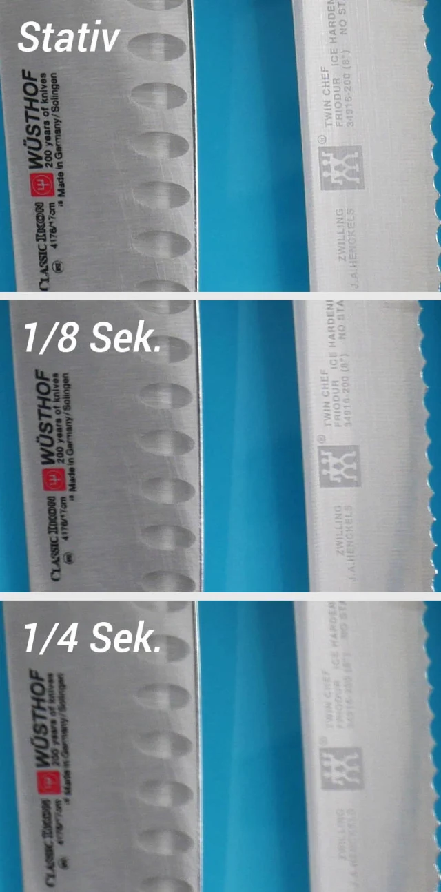 Quelle: PCtippUnd hier der Crop, wobei die unteren beiden Aufnahmen aus der Hand gehalten wurden. Es wurde jeweils die beste Aufnahme aus drei Versuchen ausgewählt: