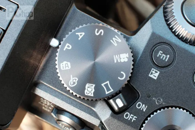 Die Bedienelemente fühlen sich griffig an; allerdings sind die Einstellräder scharfkantig genug, um während der umtriebigen Lernphase unangenehm aufzufallen. Die beiden beschrifteten Räder steuern die Auslöseart und die Belichtungsprogramme. Zwei weitere, unbeschriftete Einstellräder befinden sich neben der Daumenauflage und unter dem Auslöser. Sie regeln je nach Belichtungsart die Verschlusszeit, die Blende oder andere Einstellungen, wenn gleichzeitig eine der Funktionstasten gedrückt wird.