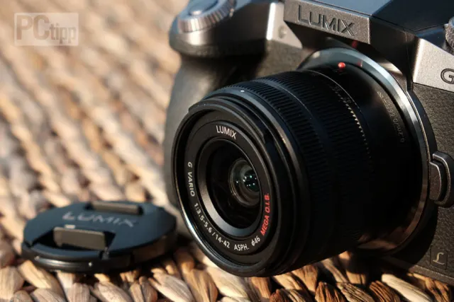 Das mitgelieferte Zoom ist leicht, sehr kompakt und bewahrt den Charakter der G70. Diese Leichtigkeit ist aber auch den durchschnittlichen Werten zu verdanken. Die Brennweite erfasst den unspektakulären Bereich von 28 bis 84 mm (KB), die Lichtstärke beträgt gerade einmal ƒ/3.5 bis ƒ/5.6. Die kürzeste Entfernung beträgt rund 30 Zentimeter.