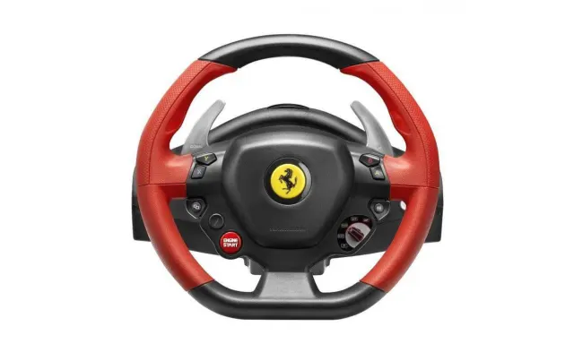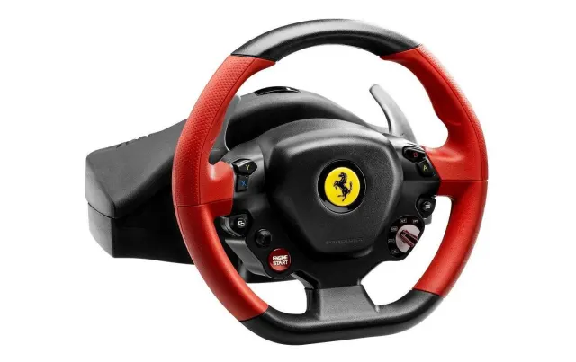 Wer bremst, verliert: Mit dem Ferrari 458 Spider Racing bietet Peripherie-Spezialist Thrustmaster ein Lenkrad für die Spielekonsole Xbox One an. Eines vorweg: Zwar lässt sich das Lenkrad per USB-Port an einem PC anschliessen, allerdings gibt hierfür schlicht keine Treiberunterstützung. Zudem rät der Hersteller von einer Nutzung ab, da je nach Spiel keine oder nur wenige Funktionen unterstützt werden.