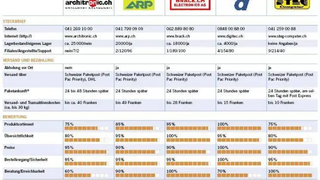 Welcher PC-Shop hat die günstigsten Preise und welcher das beste Angebot? PCtipp hat die fünf grössten Schweizer Händler verglichen.