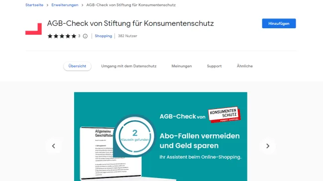 Das AGB-Check-Tool gibts jetzt auch als Browsererweiterung für Chrome und Firefox. So werden Sie beim Onlineshopping noch einfacher auf problematische Klauseln aufmerksam gemacht.