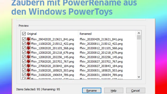 Die neuen Windows PowerToys haben wir Ihnen im Heft 10/2020 vorgestellt. Hier ein Beispiel, wie Sie mit PowerRename die falsche Reihenfolge von Jahr, Monat, Tag in Dateinamen korrigieren können.