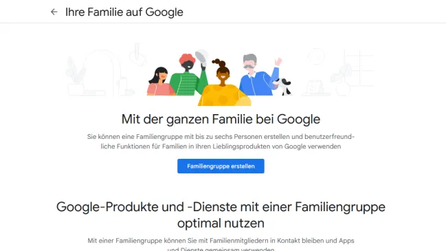 Sie können eine Familiengruppe mit bis zu 6 Personen erstellen. Ist dies einmal erledigt, können Sie die Familienfreigabe für Google-Dienste und -Abos steuern.