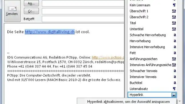 Problem: Ich möchte die Links in meiner Mailsignatur und im Mailtext in oranger Farbe gestalten. Das gelingt mir in Outlook nicht. Warum werden die Hyperlinks immer blau? Und wie kann ich das allenfalls ändern?