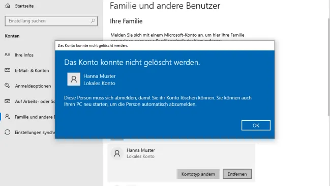 Sie möchten auf Ihrem PC ein für Tests erstelltes Benutzerkonto löschen. Aber Windows lässt Sie das nicht machen, weil jenes Konto noch eingeloggt ist. Wie können Sie das andere Konto ausloggen, ohne den PC neu starten zu müssen?