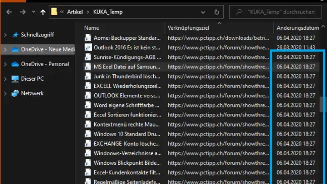 Bei einigen Dateien, die Sie via Cloud auf Ihren PC kopiert haben, zeigt der Explorer dasselbe Änderungsdatum, obwohl diese zu unterschiedlichen Zeitpunkten entstanden sind. Wie bekommen Sie die Dateien nach dem ursprünglichen Datum sortiert?