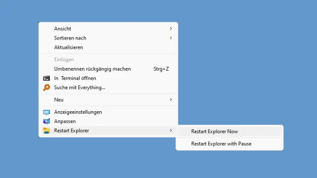 Manchmal hilft ein Neustart des Datei-Explorers beim Zeitsparen oder beim Beheben eines Problems. Falls Sie das häufiger brauchen, erstellen Sie praktische Kontextmenü-Einträge.
