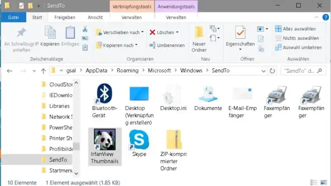 Ein Eintrag im Untermenü «Senden an» ist oft eine praktische Alternative zum «Öffnen mit». Zum Beispiel fürs Öffnen von Bilderordnern in der IrfanView Thumbnails-Ansicht.