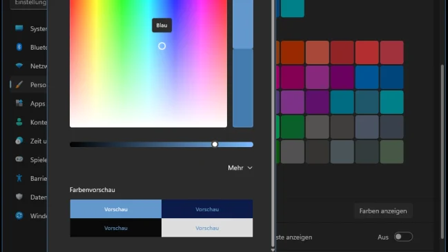 Windows 11: (Fast) exakt gewünschte Farbe im Fensterrahmen