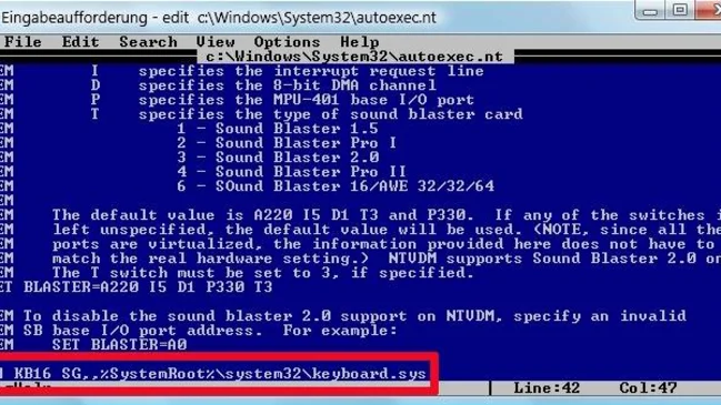 Tastaturlayout ändern im MS DOS-Editor