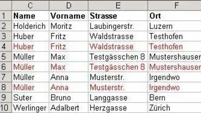 Duplikate einer Excel-Adressliste anzeigen