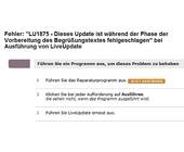 Norton AntiVirus meldet «LU1875 Update während Phase des Begrüssungstextes fehlgeschlagen». Wiederholtes Aufstarten von lusetup.exe brachte nichts.